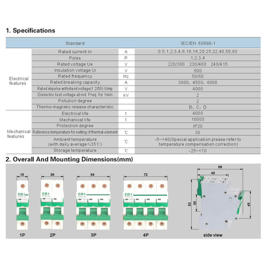 63 AMP EBI Circuit Breaker MCB | Single Pole